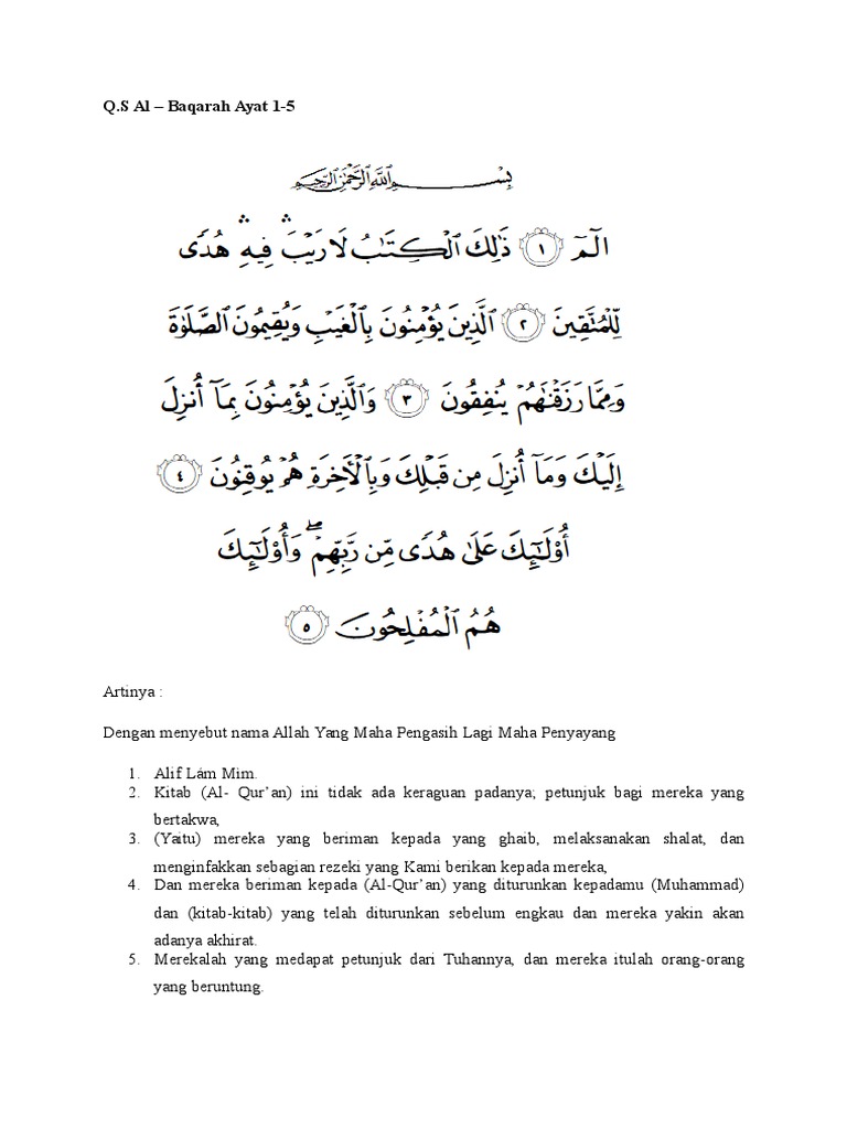 Al Baqarah Ayat 1-5 : • 1,3 млн просмотров 2 года назад.. Perhatikan pada ayat surat al baqarah ayat 2 ini, disitu terdapat 2 buah tanda titik 3, itu adalah tanda waqof. Dengan menyebut nama allah yang. ذَٰلِكَ ٱلْكِتَٰبُ لَا رَيْبَ ۛ فِيهِ ۛ هُدًى لِّلْمُتَّقِينَ. Surah al baqarah ayat 1 5 merdu mp3 & mp4. .mendapatkedu … dukan di masyarakat.3) menyembah hanya kepada allah swt.