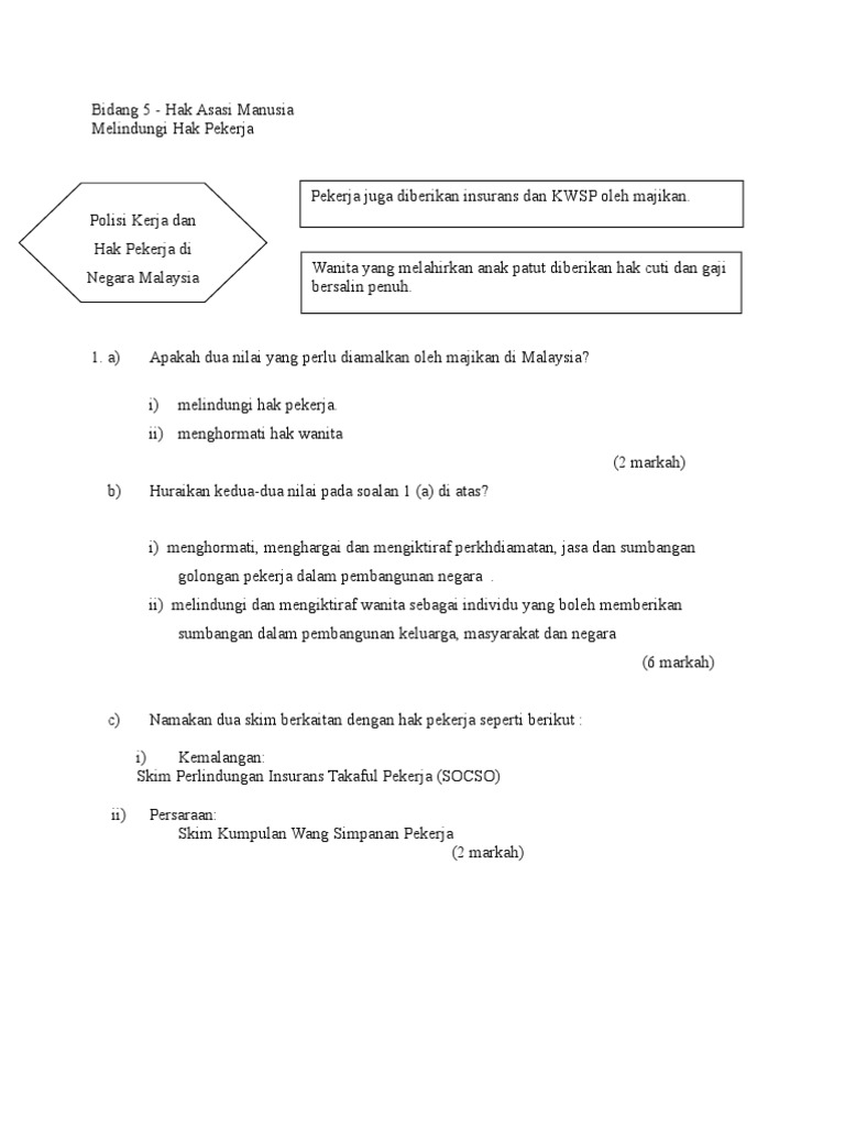 Http Dspace Unimap Edu My Bitstream Handle 123456789 23663 Hak 20dan 20kebajikan 20pekerja Pdf Sequence 6 Isallowed Y from Hak asasi manusia di indonesia didasarkan pada falsafah dan ideology pancasila, pembukaan uud 1945, batang tubuh uud kasus tki di malaysia (2002) terjadi peristiwa penganiayaan terhadap tenaga kerja wanita indonesia dari persoalan. Akta ini digubal oleh kerajaan untuk melindungi dan menjaga kebajikan para penjawat di malaysia dari ditindas oleh majikan. Hak pendidikan adalah salah satu hak asasi manusia dalam peruntukan perlembagaan perseketuan mengenai hak asasi manusia di malaysia iaitu dalam perkara 12. Kesempatan atau peluang kerja di malaysia juga lebih banyak. Perkongsian mengenai peluang pekerjaan di malaysia, berserta tips untuk cari kerja. Sebagai majikan, di antara cabaran utama yang perlu dihadapi ialah isu disiplin pekerja. Apakah pekerja asing di malaysia dapat bekerja lebih dari 5 (lima) tahun? Anda wajib menghormati ketentuan dan hukum serta adat istiadat yang berlaku di malaysia.
